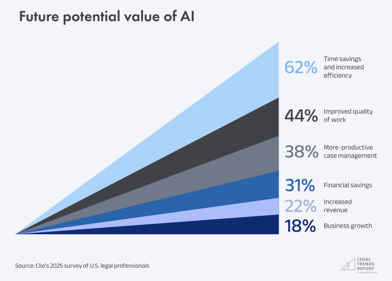 36% of law firms say that AI has had a positive influence on revenues. Among heavy-use adopters, the number jumps to 69%. – Clio 2025 Legal Trends Report